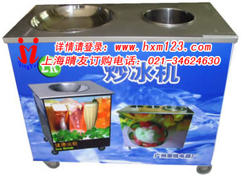 炒冰,是当代风麾全球的冷食新潮。由于制作简单,实用廉价,且可根据不同口味随意调制,佐以各种瓜果、蜜饯或含糖液体置入炒冰机内炒动几十秒,瞬间即成雪泥状炒冰,制成色香味具佳的花色冷碟,其乐无穷。结冰程度可任意控制,其适应面广,趣味性强,加工的食品口感好,为任何饮料机所不及,由其生产出来的炒冰系列食品花色多样,营养丰富,口感绝佳,消暑降温,活血生津,必将代替传统冷饮食品,引领新世纪冷饮潮流,占领现代冷饮市场,是炒制现代新颖冷食的最佳设备。