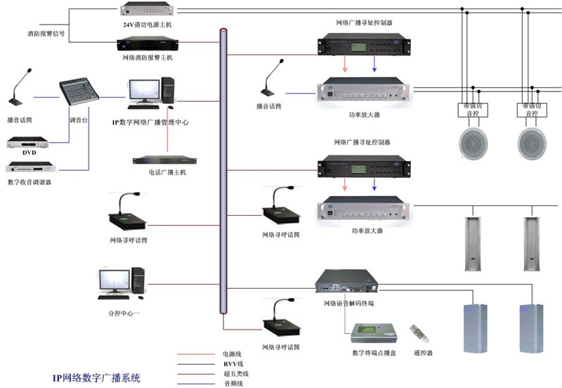 8) 可由广播主控室统一控制广播,又可各自做为一个子系统本地独立广播;