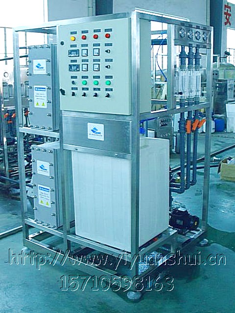 阴离子交换膜只允许阴离子透过,不允许阳离子透过;而阳膜只允许阳离子透过,不允许阴离子透过。在一对阴阳离子交换膜之间充填混合离子交换树脂就形成了一个EDI单元。阴阳离子交换膜之间由混合离子交换树脂占据的空间被称为淡水室。将一定数量的EDI单元罗列在一起,使阴离子交换膜和阳离子交换膜交替排列,并使用网状物将每个EDI单元隔开,形成浓水室。在给定的直流电压的推动下,在淡水室中,离子交换树脂中阴阳离子分别在电场作用下向正/负极迁移,并透过阴阳离子交换膜进入浓水室,同时给水中的离子被离子交换树脂吸附而占据由于离子电迁移而留下的空位。事实上离子的迁移和吸附是同时并连续发生的。通过这样的过程,给水中的离子穿过离子交换膜进入到浓水室被去除而成为除盐水。