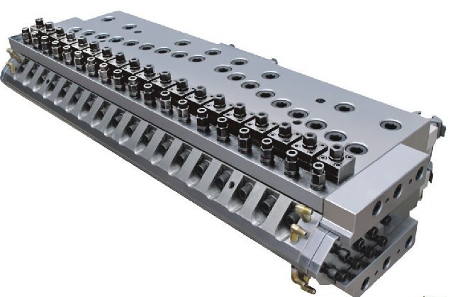 PVC自由发泡板模具模头,两半型模身设计,模头解体、清理简单易行,手动微调模唇或可移动式上模唇设计,以适合挤出板材的不同厚度要求。垂直90度阻流棒调节装置,模身采用优质模具钢或进口合金钢,以延长模具的寿命。