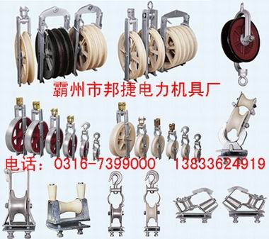 用途:既可作悬挂型放线滑车又可以作朝天放线滑车.特点:滑轮有铝尼龙轮供选,尼龙轮