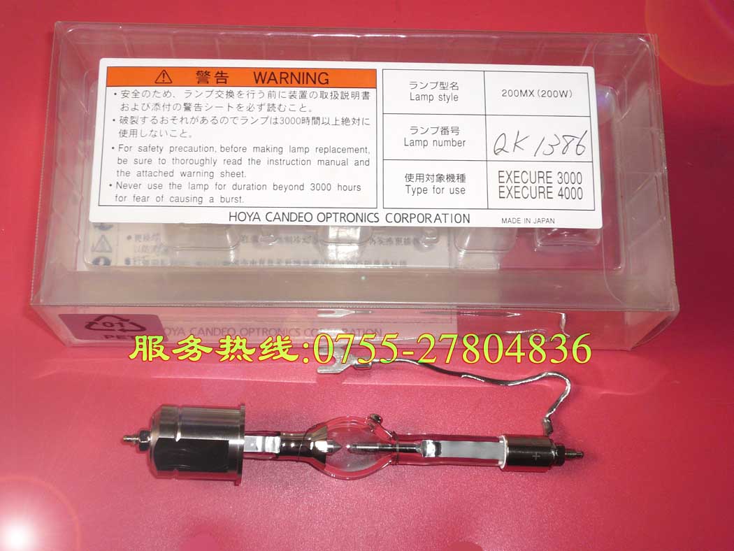 ◆ 200MX:200W,初始照射强度大于4000mW/cm2.寿命:2000小时适用机型HOYA HOYA EXECURE3000/4000