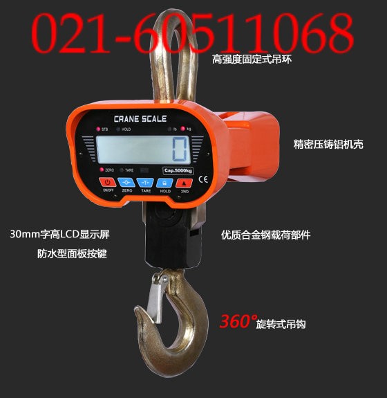 ? 电子吊钩秤【吊磅】【电子吊秤】5位LED超高亮度数码管显示,特别适合光线昏暗的场合使用