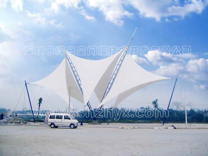 深圳市烨兴空间膜技术开发有限公司是我国较早从事膜结构,钢结构,网架及室内软膜天花的开发、方案设计、结构设计、静动力计算分析、裁剪设计、加工制作、整体安装到使用维修全方位服务的专业企业,公司下设立了市场部、工程部、技术部、加工部、人事部、办公室总工室