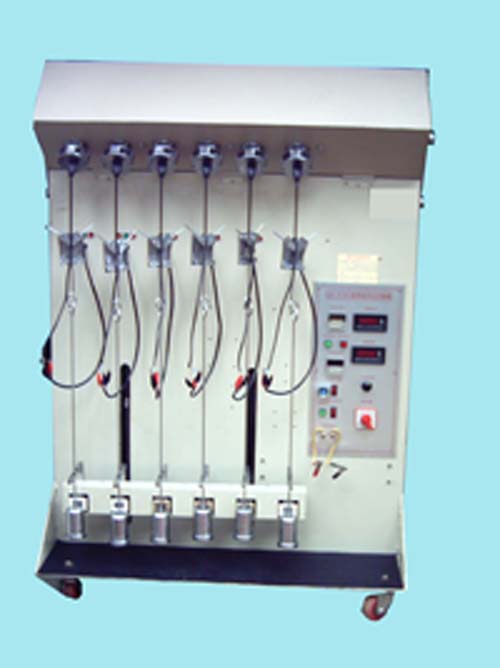 本机专门试验插头片与导体之接合强度及导体线之抗突拉强度。将插头片固定于夹具内,导线尾端连接冲锤杆,即可测试突拉。突拉测试完成之后,吊上回转砝码,进行回转试验及通电流试验。