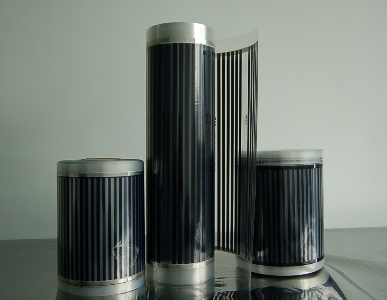 电热膜的墨线是特制导电线状油墨,金属载流条的材质是铜镀锡和银浆等合金材料。电热膜的制造已实现电脑数控,油墨线的厚度、油墨线两端的直径都可以根据散热需要加以控制,以确保电热膜发热时的温度水平及均匀性。