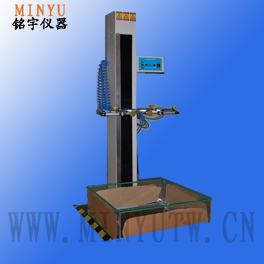 本機採用氣動結構,將被測試件置於專用夾具(可調行程)夾牢,按下跌落鍵,氣缸鬆開,試件將作自由落體試驗。跌落高度可作上下調整,並附有高度尺規,可得知試件跌落高度。本機開鍵元件均為日本國原產性能可靠,多種跌落地板可供選用,可滿足不同試驗標準。