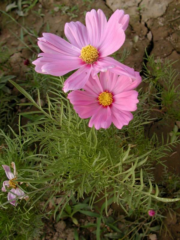 波斯菊又名秋英,大波斯菊,原产墨西哥。喜光,耐贫瘠土壤,忌肥,土壤过分肥沃,忌炎热,忌积水,对夏季高温不适应,不耐寒。需疏松肥沃和排水良好的壤土。属菊科,秋英属。草本植物,细茎直立,单叶对生,头状花序着生在细长的花梗上,顶生或腋生。筒状花占据花盘申央部分均为黄色。瘦果有椽,种子寿命3~4年,干粒重69。花期夏、 秋季。