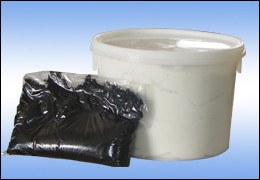 三、把箱内1桶白色双组份聚氨酯密封胶(A组份)与1袋黑色固化剂(B组份)充分搅拌均匀,直到无色差为止。A:B=100:8-12,用前应先做小试。