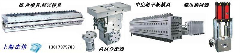 上海杰伟机械制造有限公司是目前国内最专业的挤出平模头制造商。专业生产各种塑料板、片、膜模具,单层或多层共挤模头、分配器、熔体计量泵、各种液压自动换网器、镜面辊筒等,丰富的生产制造经验和持续的技术创新,配以最现代化的加工中心设备,使产品日趋完美,广泛适用于PP、PE、APET、PETG、PS、HIPS、ABS、PC、PMMA、PVC、 EVA等原料的生产。 所生产的每一副模头都是根据客户的具体要求专门精心设计的,我们的工程技术人员会和每一个客户进行合作协调,以确定模头的设计方案、模身材料、流道表面、温度控制、厚度调节、宽幅调节和其他基本因素。“品质卓越、完美如一”是杰伟公司的质量方针,“诚实待人”是我们的核心理念,将努力创造卓越的模具精品,提供周到完善的服务,协助客户和合作伙伴创造更多的价值。