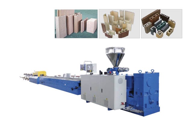 木塑挤出设备:采用特殊设计的螺杆机筒、模具及挤出机加工生产工艺生产木塑产品。公司产品系列:木塑一步法厚板设备;木塑一步法异型材设备;木塑一步法装饰材设备;木塑造粒设备;各种木塑模具。挤出机单机两级混合直接挤出,也可造粒后两步法挤出,省电省空间,具有产量高,挤出压力稳定,预热加料机置于主机顶部,先抽出大部分木粉中残留的水份,使主机加料段更加充实;塑化混炼效果好等特点。优化的螺杆设计使用使剪切小,不易剪断木质纤维,能使物料在机内停留时间均匀。螺杆机筒采用双金属处理,耐磨耐腐蚀,使用寿命大大延长。该设备能生产PE、PP或PVC木塑异型材制品,主要用于托盘,包装箱板,地板,户外装饰材料等,用途十分广泛。木粉及植物纤维添加量高(最高可达50-75%);设备适应能力强,可同时加工PP、PE、PVC、ABS、PS等。