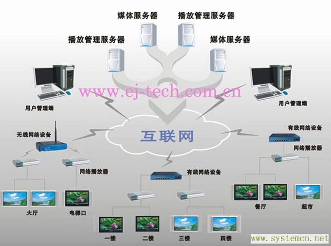 1,基本型多媒体发布系统:采用嵌入式单机版媒体播放器,特色是系统成熟稳定,安装简单容易上手,功能完全┘頋以满足一般需求。适合单店使用。