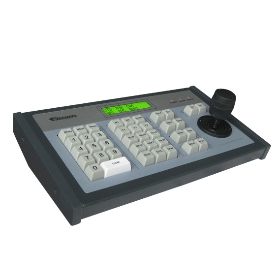 使用液晶显示屏实时显示设备当前操作状态,并能显示监控系统中其他设备反馈的状态信息,使操作方便直观。键盘面板上共有39个按键,按键采用实键开关,确保操作自如、准确可靠。三维矢量摇杆轻松、灵活控制多种类型的智能高速球和中速球,通过摇杆能直接控制摄像机镜头变倍。键盘底部有3个数据通讯端口,每个数据通讯端口的用途和波特率可由用户自行定义,用户可以根据需要选择RS-232/RS-485或RS-422通讯方式。