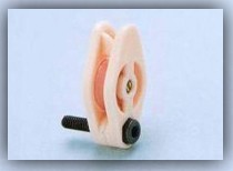 防跳线器用于漆包线大幅度改变方向及作适量导向和防止绕线过程中的跳线。其中间由精密陶瓷制作瓷圈,超精抛光达Ra0.2。瓷圈内装有高速轴承,使漆包线与瓷圈之内的延迟滑动距离小于0.20mm,保护漆膜完好及保证漆包线的跳动在很小的范围之内,保持了张力的稳定性