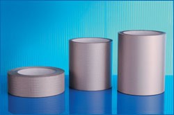 导电布胶带是在高强度的聚脂纤维布上镀以高导电的铜与镍金属,再涂布以高导电性的压克力自粘胶而成。它具有极其好的柔韧性、导电性,耐磨及抗高温性,另具极强的抗张力性以及优良的服帖性。大量使用在笔记本CABLE线材、LCD/PDP线材、手机线材上。EMI屏蔽效果最佳