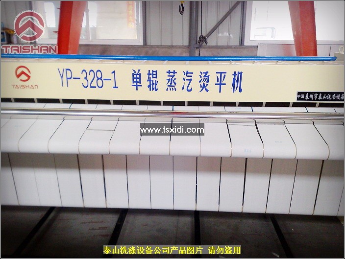 烫平机:按所熨织物的宽度分为:1800型、2500型、2800型、3000型。分单滚和双滚两种,该机由不锈钢滚筒、底架、支架、调速变频电机、输送带、输送滚筒、传动部件、电器部件等组成。通过蒸汽或电热管将不锈钢滚筒表面加热,由输送带把布草、床单、被套等输送进加热后的不锈钢滚筒表面,经高温达到熨平的效果。
