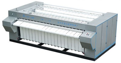 烫平机:按所熨织物的宽度分为:1800型、2500型、2800型、3000型。分单滚和双滚两种,该机由不锈钢滚筒、底架、支架、调速变频电机、输送带、输送滚筒、传动部件、电器部件等组成。通过蒸汽或电热管将不锈钢滚筒表面加热,由输送带把布草、床单、被套等输送进加热后的不锈钢滚筒表面,经高温达到熨平的效果。