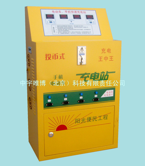 中宇唯博(北京)科技有限责任公司研发生产的“中宇”牌电动车投币式快速充电站,本产品集微电脑控制技术和最新国际开关电源电路于一体,采用先进的阶梯波输出方式,可以激活电池,有着较好的去硫化效果,然后进行维护式充电。中宇牌电动车快速充电站采用DIN41772充电模式,具有智能化、电脑计时、电脑快充、密码控制、自识别电压、多重保护、多路输出、不需专人看守等功能,配套的多用输出插头及接口,可满足不同客户的需要,堪称“万能”充电站。且造型完美、功能先进,易于操作,上市以来深受人们的欢迎。