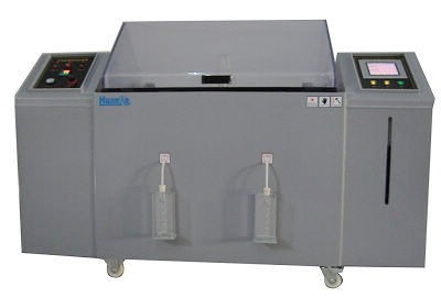 本出口型盐雾试验箱利用含盐溶液或酸性含盐溶液,在一定的温度和相对的湿度的环境下对材料或产品进行加速腐蚀,重现材料或产品在一定时间范围内所遭受的破坏程度。设备可以用来考核材料及其防护层的抗盐雾腐蚀的能力,以及相似防护层的工艺质量比较,也可以用来考核某些产品抗盐雾腐蚀的能力。