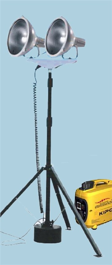 照明系统 由二个灯头装在灯盘上,灯管为2个150W或250W金卤素灯,聚光效果好。单管光通量为11000lm,使用寿命10000小时以上。可根据现场需要将每个灯头单独做上下左右角度调节,旋转实现360°全方位任意方向照明;灯盘可垂直和水平方向回转。