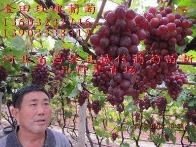 欧亚种。果实鲜红色,果粒重10-12g,穗重600g,果实卵圆形。果肉硬脆,可溶性圆形物含量20-22%,树势中庸,丰产。耐贮运。4月中旬萌芽,5月底开花,9月中下旬完熟。专家评语:该成果研究居国际先进水平。