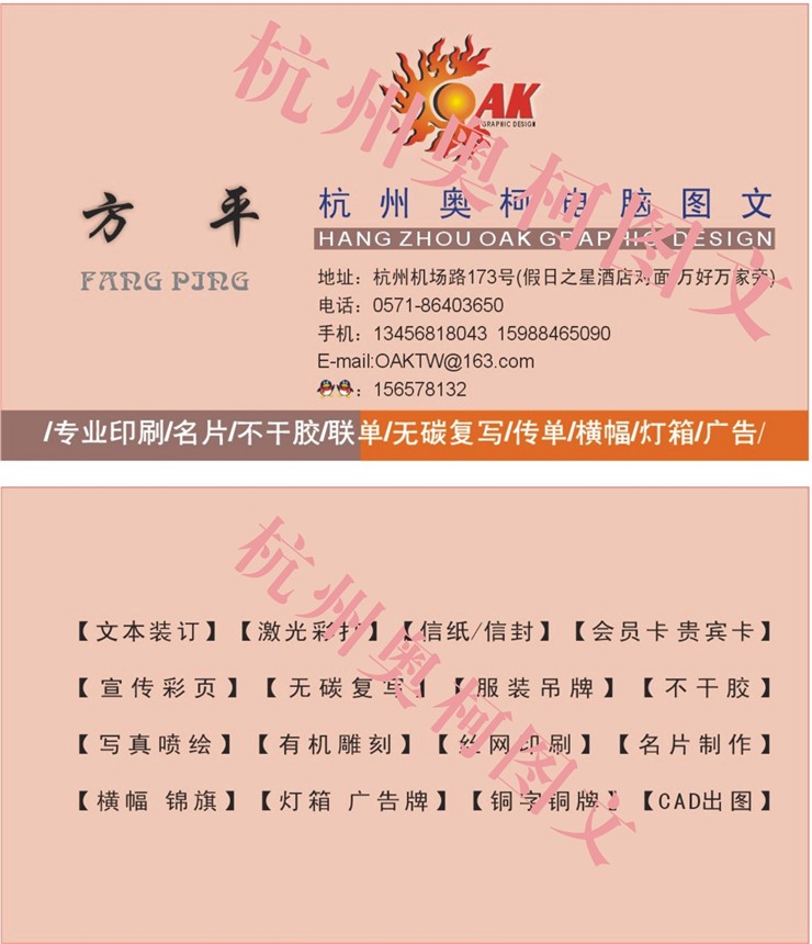 本公司拥有罗兰、武滕高精度户内外写真机,高精度喷绘机,雕刻机,胶装机,彩色打印机,高速彩色、黑白复印机,胶印机,经营:喷绘写真、文本装订、各类印刷、名片制作、横幅锦旗、户内外广告制作安装等广告业务。欢迎光临来电洽谈。