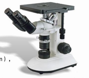 ● 物镜:平场物镜,PL10×/0.25,PL40×/0.65(弹簧), PL100×/1.25(弹簧、油);
