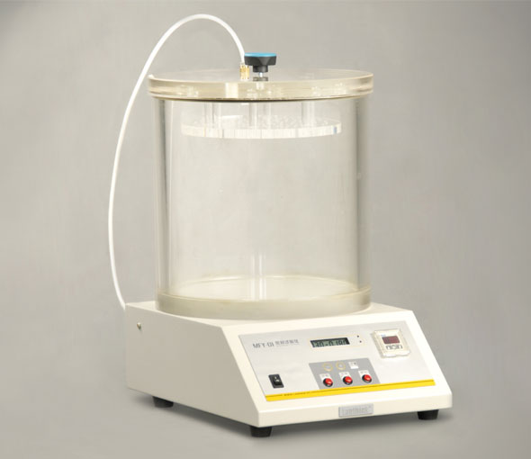通过对真空室抽真空,使浸在水中的试样产生内外压差,观测试样内气体外逸情况,以此判定试样的密封性能;通过对真空室抽真空,使试样产生内外压差,观测试样膨胀及释放真空后试样形状恢复情况,以此判定试样的密封性能。