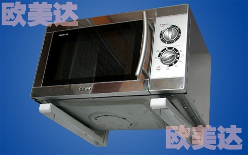 欧美达支架节省厨房操作台面,托架拐角略小于90度,使微波炉放在上面平整并不会滑落,下部托架长度可伸缩(30~47cm),可自行调节至微波炉的长度,适合大小不同的微波炉。欧美达支架采用优质钢材制作,表面采用白色喷塑漆工艺。支架承重能力强;安装简便,充分节约您宝贵的厨房台面空间。本产品亦适合企业,商场,家居,酒店,超市,厨房装饰,其它家电设备,比如烤箱等。