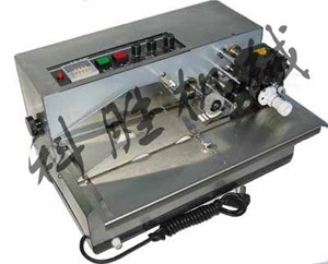 原理及特点: 固体墨轮打码机是一种先进的接触式热打码机。本机采用间歇式自动加热和精密的机械相结合,可根据用户需要,任意选择打码内容与打码位置,并可设定打码张数,打码速度快,性能可靠,字迹清晰,打码动作及计数采用光电开关控制。