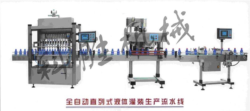 4头1L酱料灌装机 + ZPXG-90-1转盘式单头旋盖机 + TB-90L立式贴标机(只贴圆瓶) + A型铝箔封口机