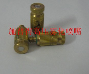 雾化高压喷嘴是由内部或外部化学过滤网、盘心、柱塞和微孔喷头几部份有机地精确组合而成。是一类液压单流体高压雾化喷嘴。高压雾化喷嘴引进美国先进技术,喷头雾点细微,喷嘴孔径从0.01mm-0.06mm等7个规格。雾点粒度3微米至10微米雾状规格不同从∠60°至∠120°的中空锥体,雾化充足、节能节水成本低、效果好、节能节水、成本低、效果好、喷头不堵塞、不滴水、喷嘴不锈部位经先进锻压工艺处理,耐用性强。高压雾化喷嘴是同类不锈喷嘴的2.5倍寿命。