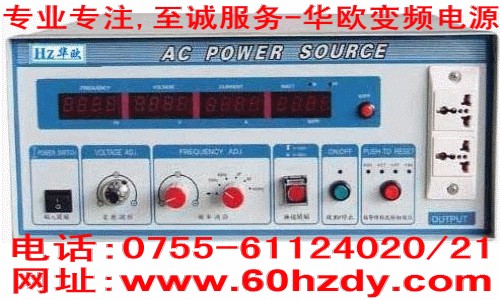 主营:变频电源,Hz变频电源,华欧变频电源,变频稳压电源,变频调压电源,变频测试电源,程控变频电源,变频变压电源,60Hz变频电源,交流变频电源,交流稳压电源,交流电源供应器,可调压变频电源,调频调压电源,单进单出变频电源,变频测试电源,单相变频电源,三相变频电源,模