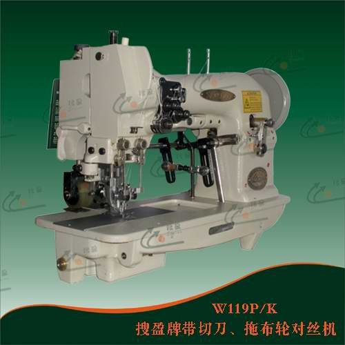 老款对丝机没有加装切刀和拖布轮,目前搜盈牌W119P/K带刀带拖轮的对丝机已经成熟,并获得了客户的一致好评。至此搜盈牌带刀带拖轮的对丝机,将作为服装生产行业的又一款成熟稳定的经典利器。该电脑化的对丝机操控性强,缝纫线迹美观,效率更高,车工工作操作轻松。